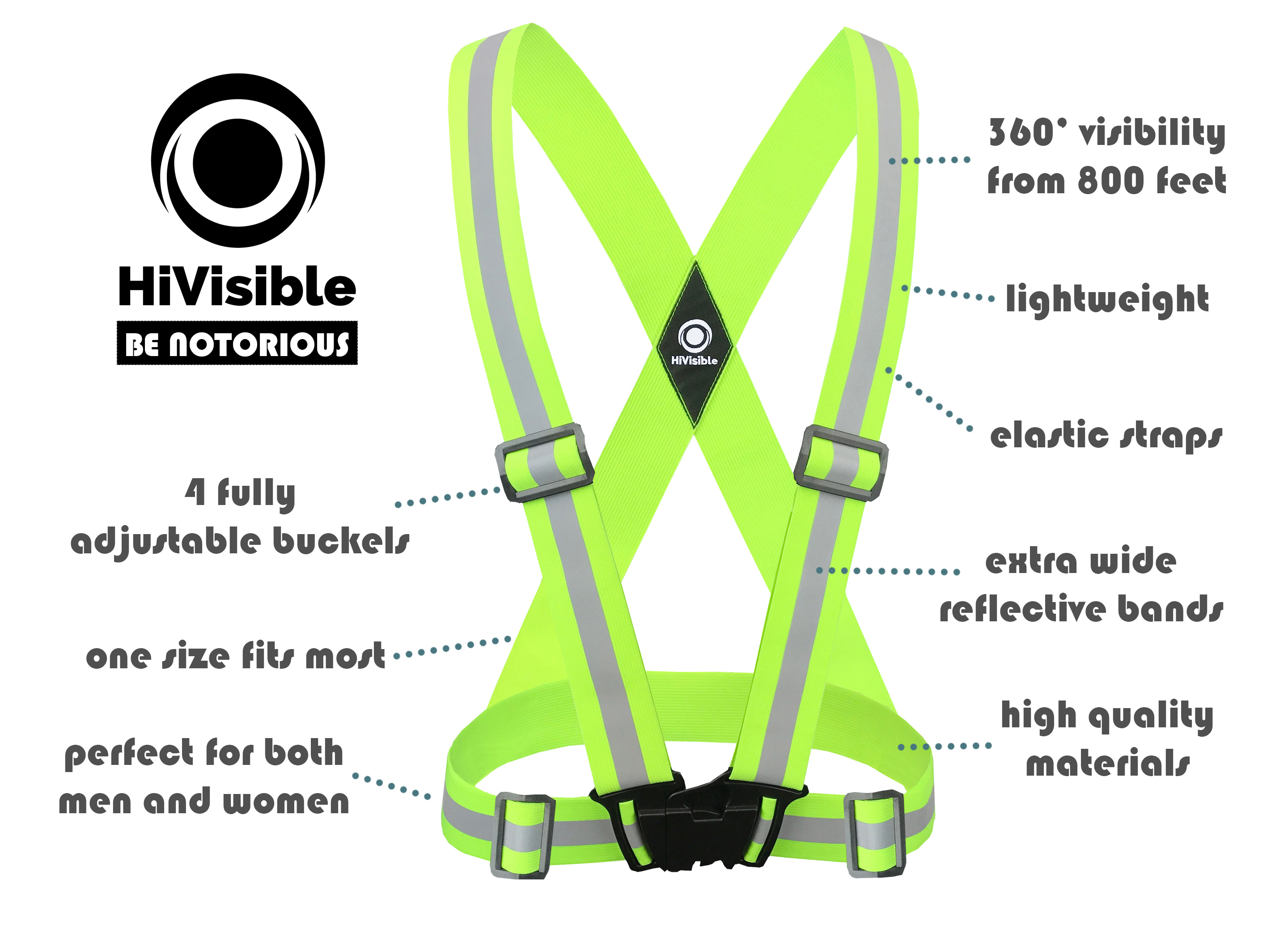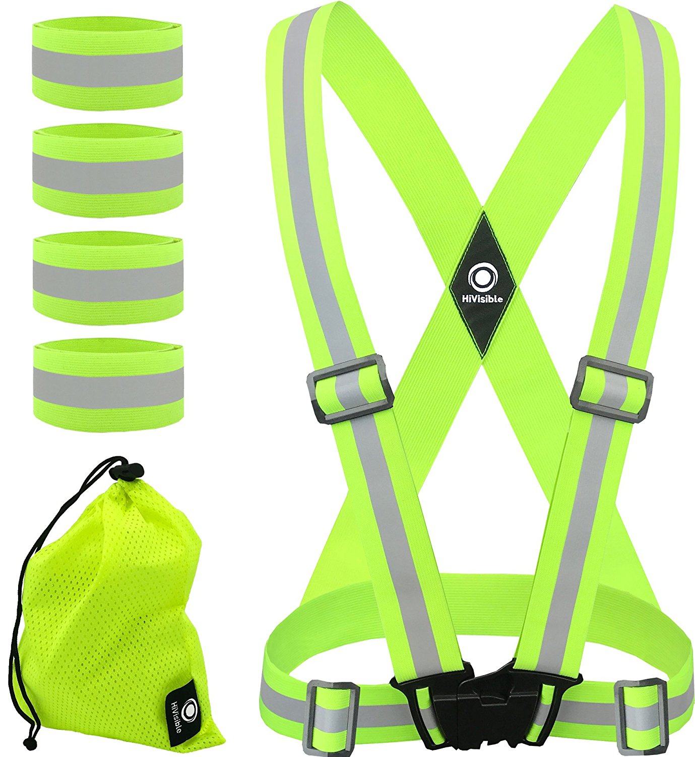 HiVisible Reflective Vest + 4 Reflective Bands + Carry Bag