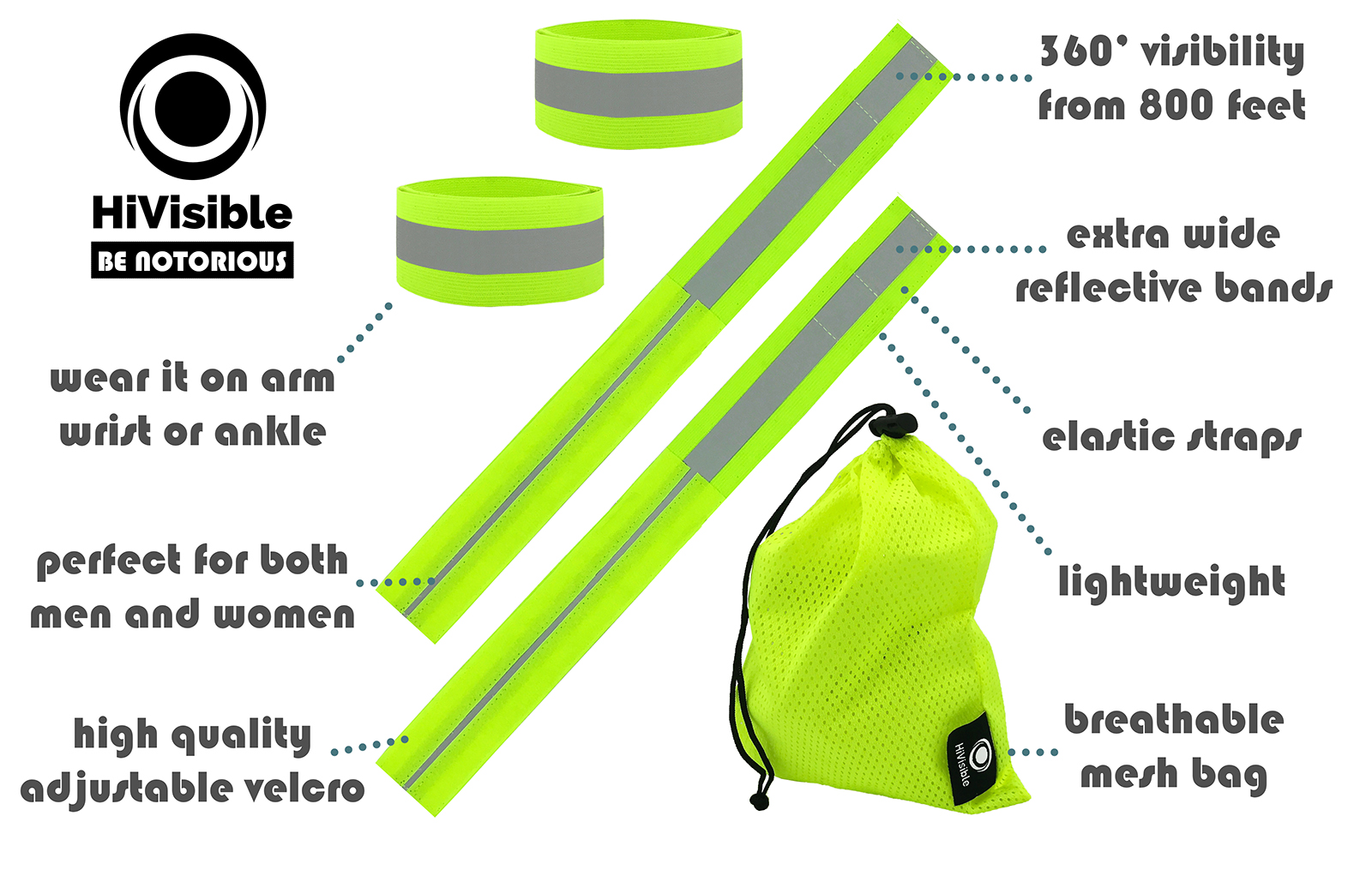 4 x HiVisible Reflective Bands + Carry Bag